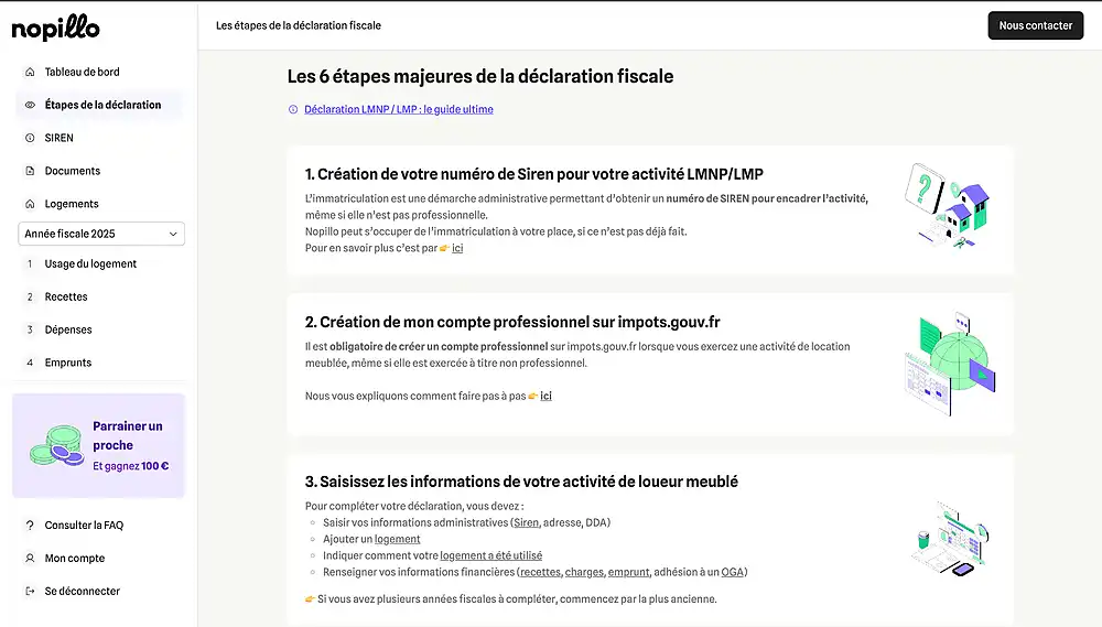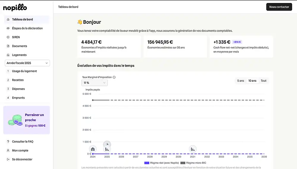 - La comptabilité LMNP en ligne : avec nopillo, toutes vos démarches administratives peuvent être effectuées à distance. Rendez-vous sur votre interface client pour accéder simplement à toutes vos déclarations, votre tableau de bord, vos économies d'impôts, …